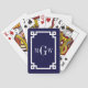 Navy Blue Wht Greek Key #2 Framed 3 Init Monogram Playing Cards