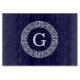 Navy Blue Wht Greek Key Rnd Frame Initial Monogram Cutting Board