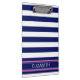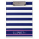 Navy Blue Wht Horiz Stripe Hot Pink Name Monogram Clipboard