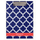 Navy Blue Wht Moroccan #5 Coral Red Name Monogram Clipboard