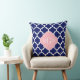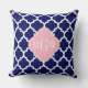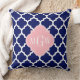Navy Blue Wht Moroccan #5 Pink 3 Initial Monogram Cushion