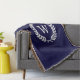 Navy Blue Wht Wheat Laurel Wreath Initial Monogram Throw Blanket