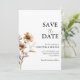 Perfect for a modern wedding, this whimsical boho Navy blue wildflower save the date has a vintage feel to it. terracotta wildflowers can be seen in this plant design.