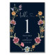 Navy Blue Wildflowers Wedding Table Numbers. This stylish & elegant wedding table numbers features gorgeous hand-painted watercolor Wildflowers. Find matching items in the Navy Blue Wildflower Dreams Collection.