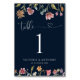 Navy Blue Wildflowers Wedding Table Numbers