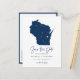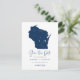 Navy Blue Wisconsin Map QR Code Save the Date Announcement Postcard
