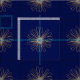 Big abstract golden yellowish beige flowers spread on a deep dark blue background. Floral patterned fabric in a vintage, retro style. Ideal for curtains, roman blinds and any other home or fashion projects.
