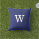 The front of this pillow is navy blue with a monogram initial in white for you to personalise. The back of the pillow has nautical coloured navy blue and white stripes.