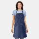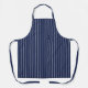 Navy blue apron with stylish white pinstripe pattern. The thin vertical stripes are evenly spaced.