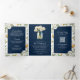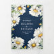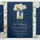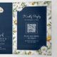 Navy Blue Wood Daisies Mason Jar QR Code Wedding Tri-Fold Invitation