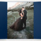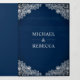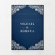 Navy Blue Wood Horseshoes Lace Wedding Photo Tri-Fold Invitation