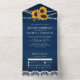 Navy Blue Wood Lace String Light Sunflower Wedding All In One Invitation