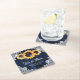 Navy Blue Wood Lace Sunflower Wedding Thank You Square Paper Coaster