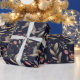 Navy Blue Woodland Animal Nature Botanical Pattern Wrapping Paper