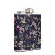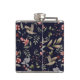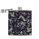 Navy Blue Woodland Animals Floral Leaves Pattern Hip Flask