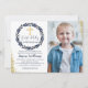 Navy Blue Wreath Gold First Holy Communion Photo Invitation
