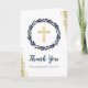 Navy Blue Wreath Gold Glitter Confirmation Photo Thank You Card