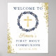Navy Blue Wreath Gold Glitter First Holy Communion Poster