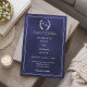 Navy blue wreath monogrammed simple wedding invitation