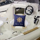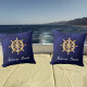 Navy blue yacht boat name gold steering wheel cushion