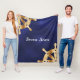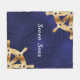 Navy blue yacht boat name gold steering wheel fleece blanket