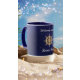 Navy blue yacht boat name gold steering wheel mug
