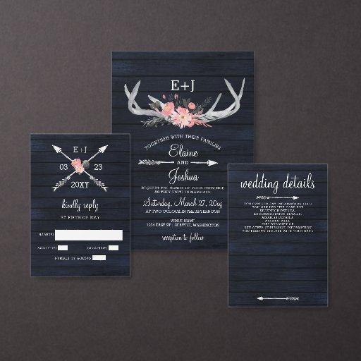 Navy Blush Blooming Antlers Rustic Chic WeddingDesigned by Maria G