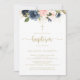 This navy blush floral gold baptism invitation is perfect for a rustic baby baptism or christening. The design features beautiful hand-painted dark blue, blue, navy, pink, blush, gold flowers and green foliage.
