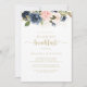 Navy Blush Floral Gold Wedding Breakfast Invitation