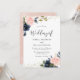 Navy & Blush Flowers Glitter Wedding Invitation