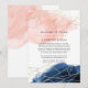 Navy blue and blush pink watercolor wash reduced wedding guest list announcement with gold crystal elements. In these uncertain times, it can happen that you may have to hold a smaller wedding than originally planned. This announcement card will take away the awkwardness and take a load off your mind! You can furthermore provide an option to join you for a virtual ceremony.