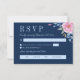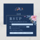 Navy Blush Pink Floral Monogram Meal Choice RSVP Card