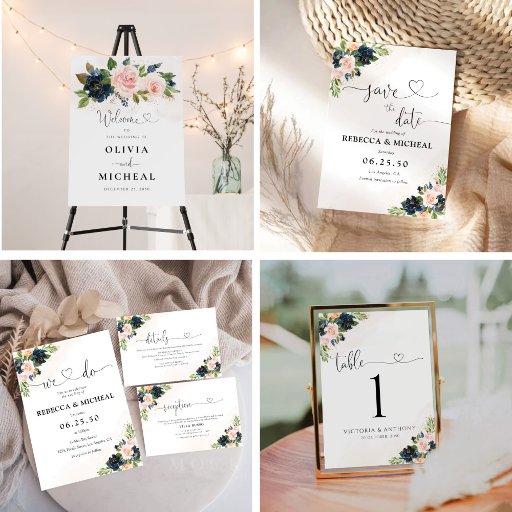 Navy & Blush Pink Floral Wedding Table Numbers. This stylish & elegant Wedding Shower Invitation features gorgeous hand-painted watercolor Navy & Blush Pink Floral. Find matching items in the Navy & Blush Pink Floral Collection.