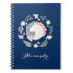 Navy Blush Whimsical Unicorn Wreath Spiral Notebook