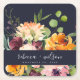 NAVY BLUSH YELLOW ORANGE FLORAL BUNCH WEDDING SQUARE PAPER COASTER