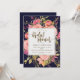 A beautiful pink/coral wild flower/floral/boho design bridal shower invitation with a pale gray square text insert and co-ordinating navy blue background and green reverse side. Easy to edit or delete the available text fields to personalize the information with your own details for a professional and custom finish. Lots of matching items in this boho collection. Please visit my shop to see the full range. Stickers and address labels also available, amongst other items, as well as slight variations on the invitation design..