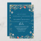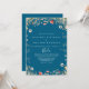 This navy boho wildflower Spanish wedding invitation is perfect for a rustic wedding. The design features pink, purple, blush, yellow, dusty blue, red, burgundy meadow wild flowers assembled in a seamless and delightful floral pattern, evoking natural beauty.