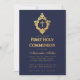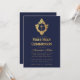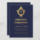 Navy Boy First Communion Faux Gold Cross in Crest Invitation