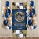 Navy Blue & Bronze Gold 9 Photo Collage Graduation Large Vinyl Banner . Makes for a perfect welcome or yard party sign!