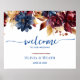 Deep burgundy and rich Navy blue is harmoniously paired with golden foliage for a rich tapestry of colour. Welcome sign picks up the navy and burgundy theme. Goes well with deep dusty blue, mustard, marsala, and wine reds.