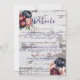 This is an illustration of navy blue, burgundy, and blush pink watercolor peonies with a string of lights. The background is old white wood. The front and back are fully customisable.