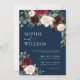 Boho Burgundy and Blush Floral Navy Wedding Invitation. This invitation is characterized by boho burgundy and blush roses and flowers with two modern high-class fonts that shape the trends of the present and future festive events.