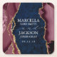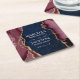 Navy, Burgundy & Gold Agate Wedding Square Paper Coaster