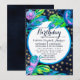 Navy Butterfly Floral Leaves Watercolor Birthday Invitation