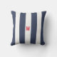 Navy Cabana Stripe & Personalised Red Monogram Cushion