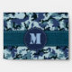 Military navy camouflage seamless pattern background with monogram.