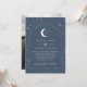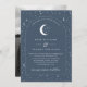 A celestial moon and star themed wedding invitation with a navy grey background and white text with elements. You can also add your own photo on the back. Customise the colour of the star pattern, background, arch fill and moon element!
