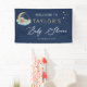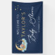 Welcome guests in dreamy celestial style with this moon and stars baby shower banner. Designed in deep navy blue with a golden crescent moon and sleeping baby, this banner brings warmth and elegance to your celebration. The mix of gold and white lettering adds a soft shimmer, making it ideal for a night sky or twinkle-little-star themed baby shower.