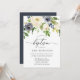 Navy Champagne Watercolor Floral Girl Boy Baptism Invitation