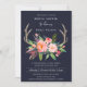 NAVY CHIC BOHO BLUSH ANTLER FLORAL BRIDAL SHOWER INVITATION